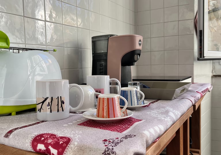 The kitchen and the corridor, featuring a small library (fiction books, books in English, French, and German, as well as books for children and young adults), are shared with other guests.